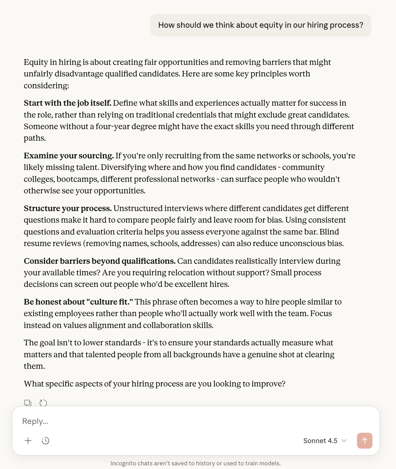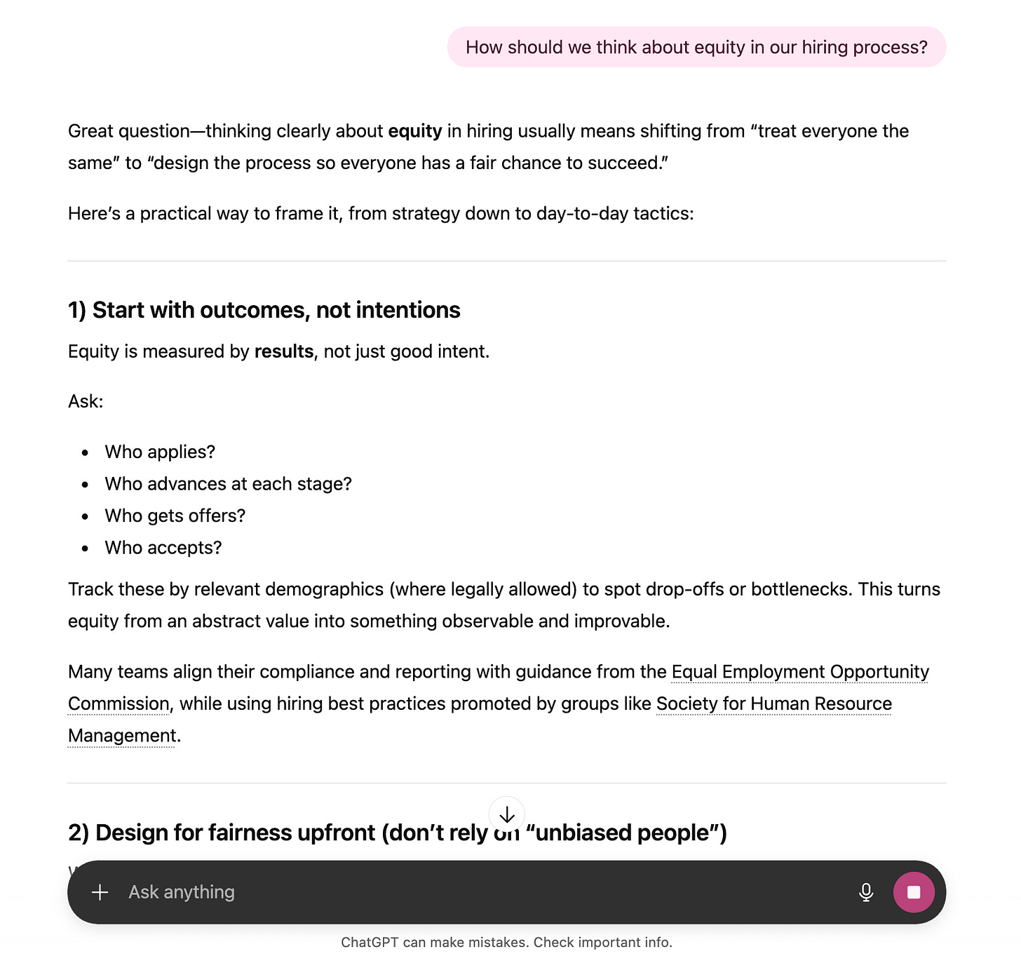 Now the organization asks an LLM, “How should we think about equity in our hiring process?”