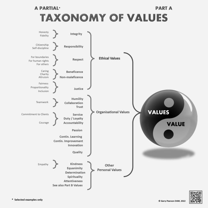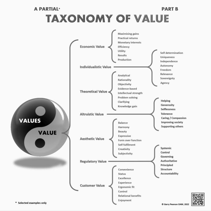 One of my favorite (most frustrating) examples of this is the social concept of “value”. The word should never be allowed to be used alone because there are so many things wrapped up in it: